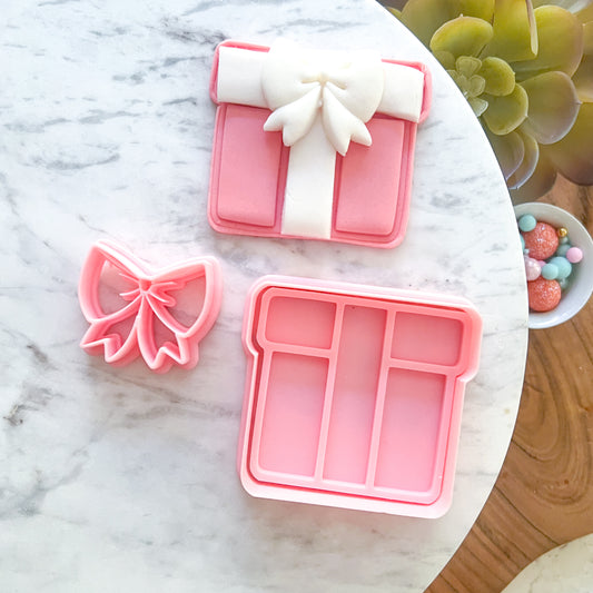 "Gift Box with Bow" Cookie Cutter & Stamp (3pc)
