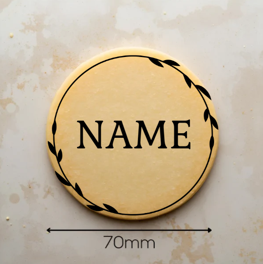 Use our online editor to create your own personalised circle shaped cutter and stamp with your choice of borders.