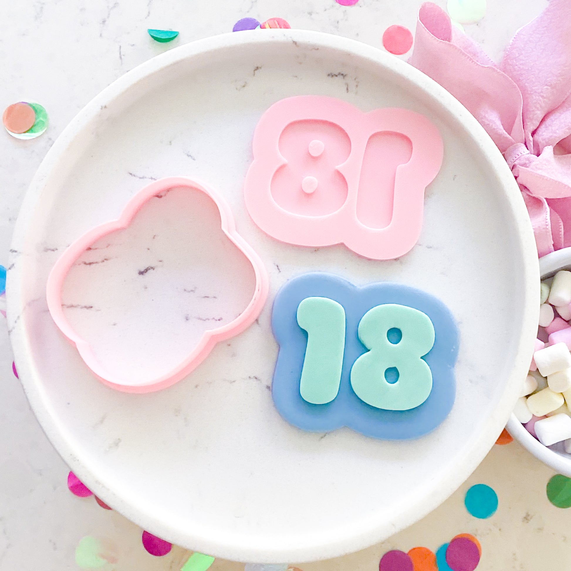 "18" Bubble Font - Cookie Stamp & Cutter Set