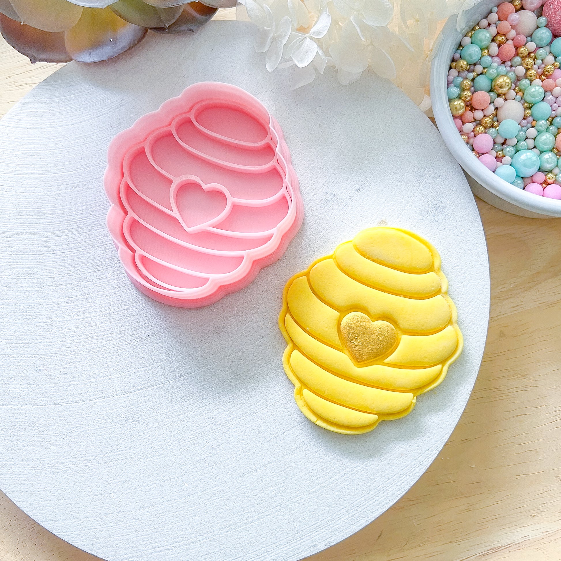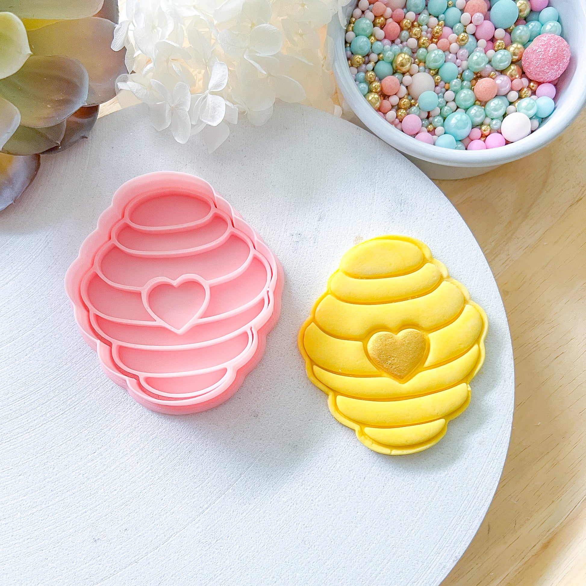 Welcome a little one with sweet, homemade cookies. Our "Bee Hive" - Cookie Cutter & Stamp" cookie cutter and stamp set makes it super simple to create cookies or fondant toppers with clean edges and easy decorating. Great for party platters, favour bags, and quick bakes with the kids.