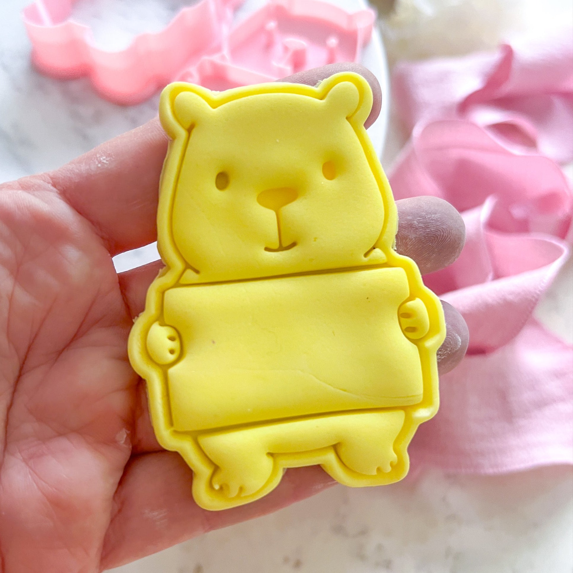 Create a themed cookie moment for parties, gifts, and bake sales. Our "Capybura with sign" - Cookie Cutter & Stamp" cookie cutter and stamp set makes it super simple to create cookies or fondant toppers with clean edges and easy decorating. Great for party platters, favour bags, and quick bakes with the kids.