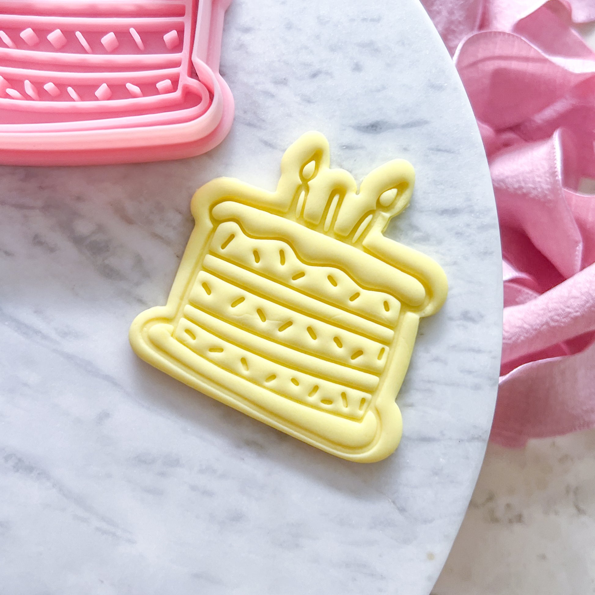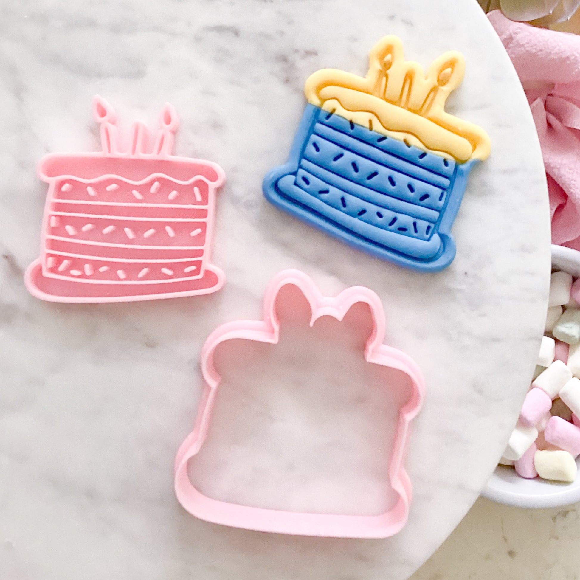 Personalise birthday bakes and party favours with handmade cookies. Our "Cartoon Birthday Cake" - Cookie Cutter & Stamp" cookie cutter and stamp set makes it super simple to create cookies or fondant toppers with clean edges and easy decorating. Great for party platters, favour bags, and quick bakes with the kids.