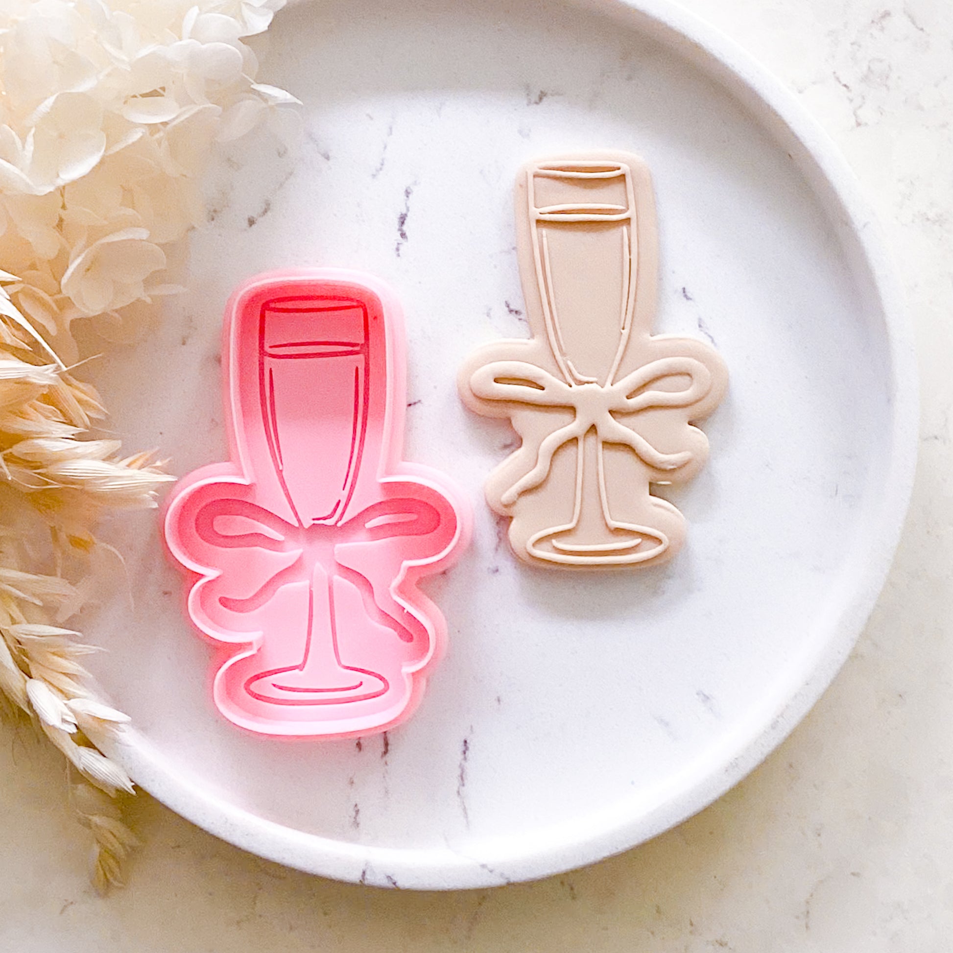 "Champagne Glass with Bow" - Cookie Cutter & Stamp