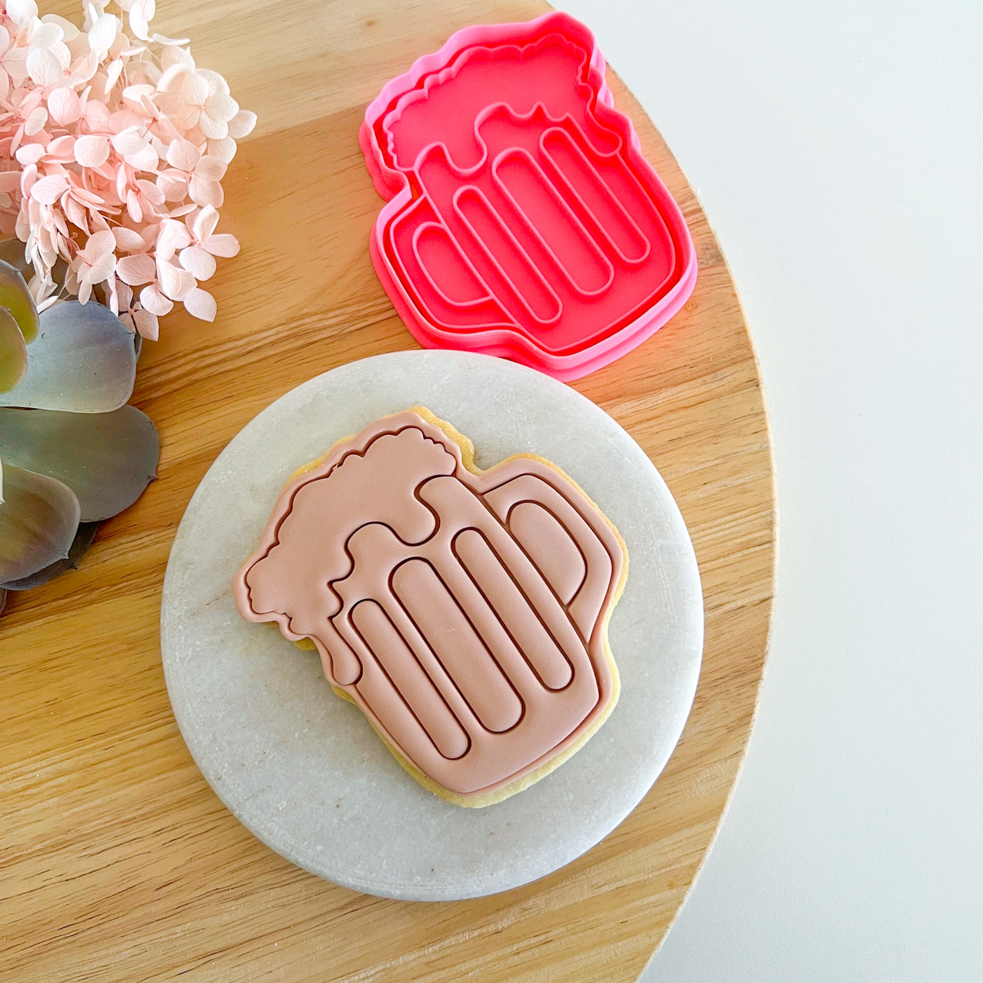 Create a themed cookie moment for parties, gifts, and bake sales. Our "Beer Stein" cutter and stamp" cookie cutter and stamp set makes it super simple to create cookies or fondant toppers with clean edges and easy decorating. Great for party platters, favour bags, and quick bakes with the kids.