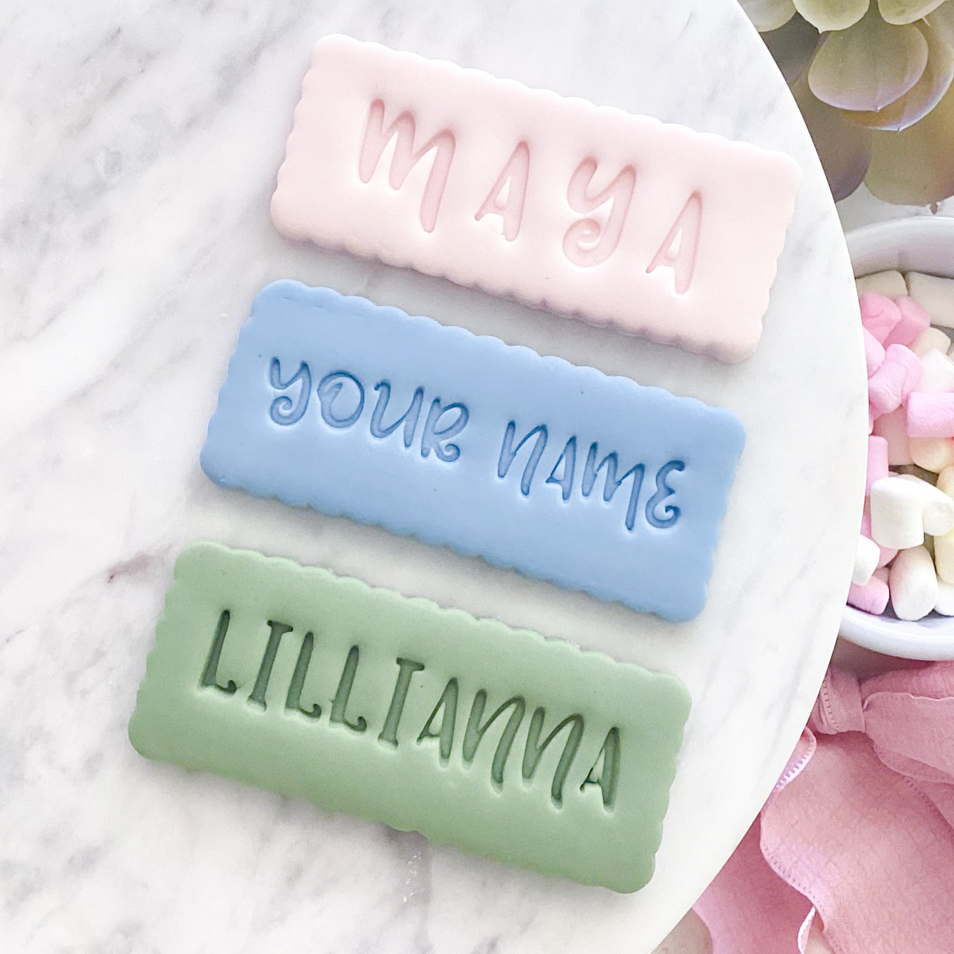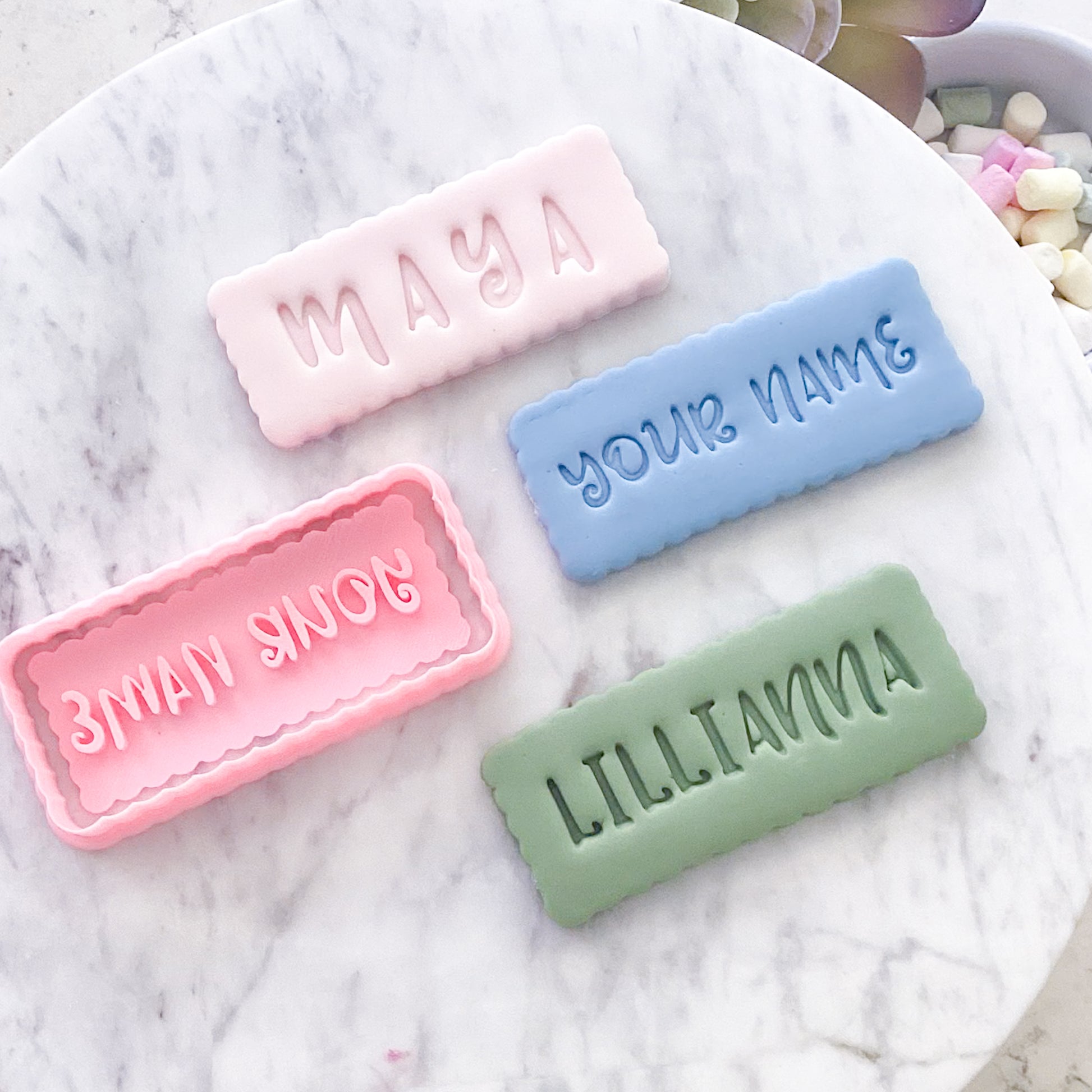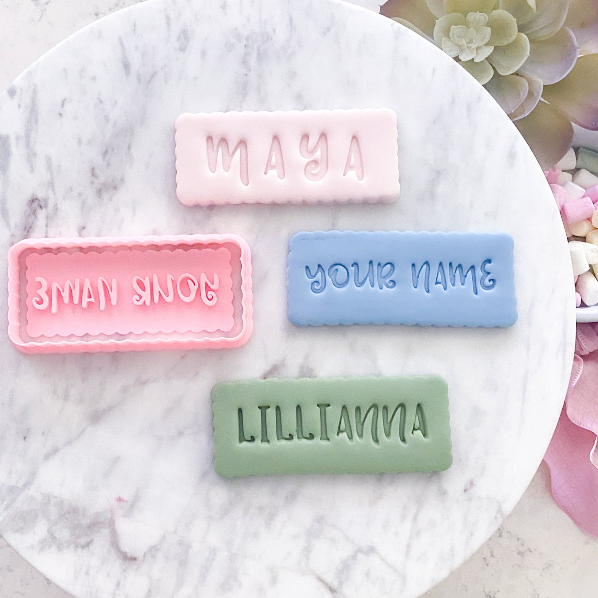 Create a personalised cookie stamp set to celebrate your next event. Just type the name you want to into the NAME field and we'll take care of the rest.