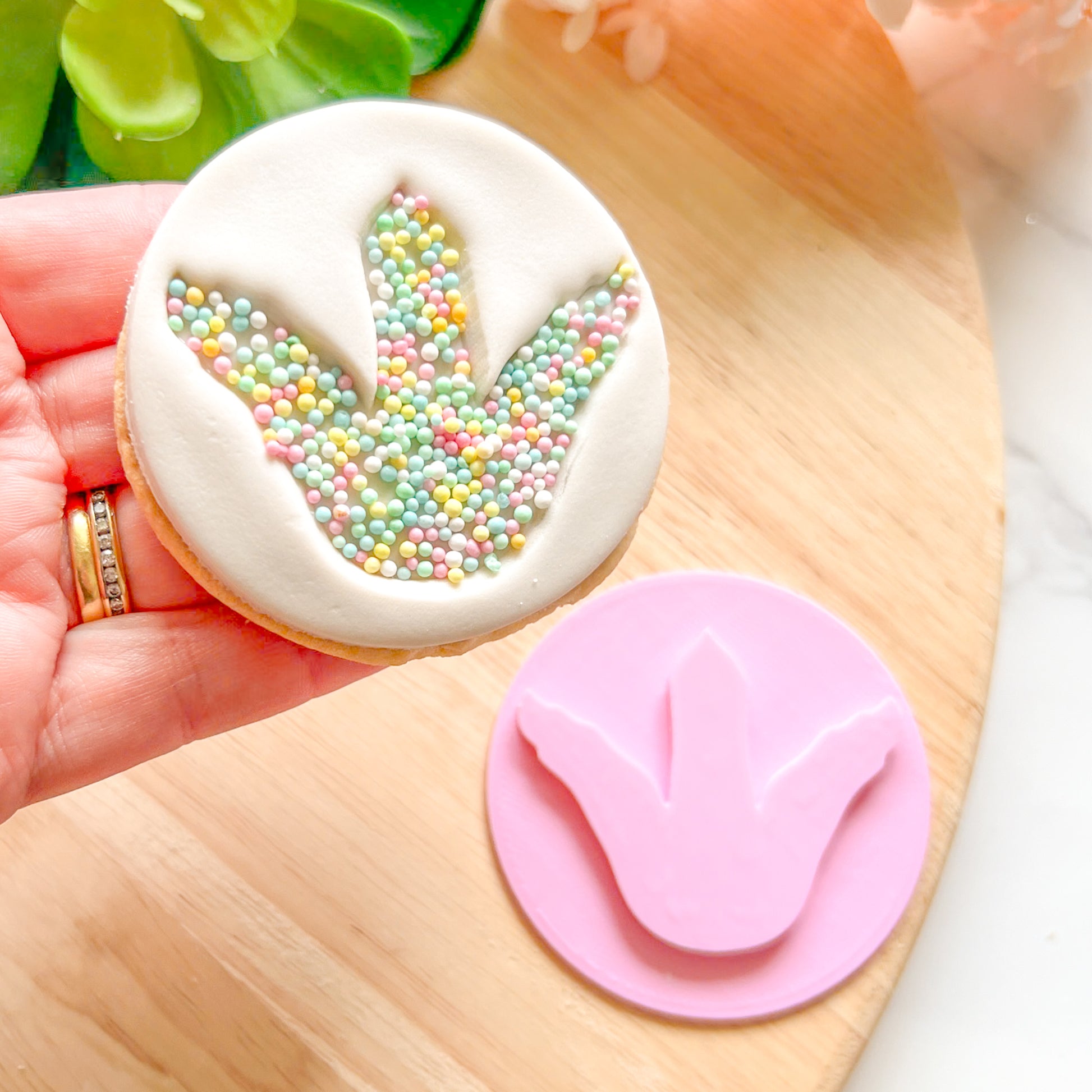 Our fondant stamps are designed to be used comfortably without handles — simply press them evenly into your fondant for clean, detailed results.