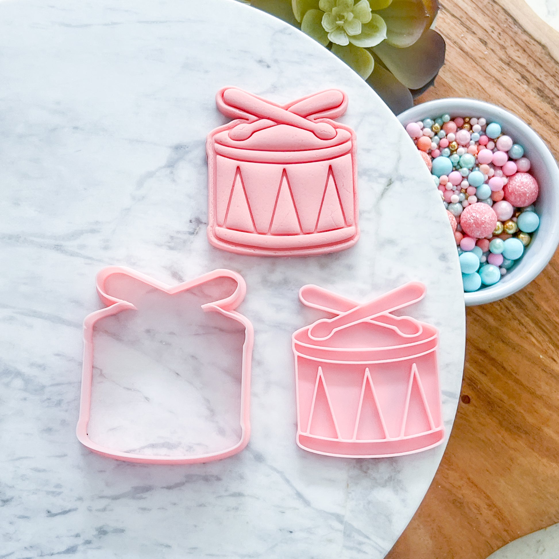 Deck out your dessert table with festive shapes everyone will love. Our "Drum" Cookie Cutter & Stamp" cookie cutter and stamp set makes it super simple to create cookies or fondant toppers with clean edges and easy decorating. Great for party platters, favour bags, and quick bakes with the kids.