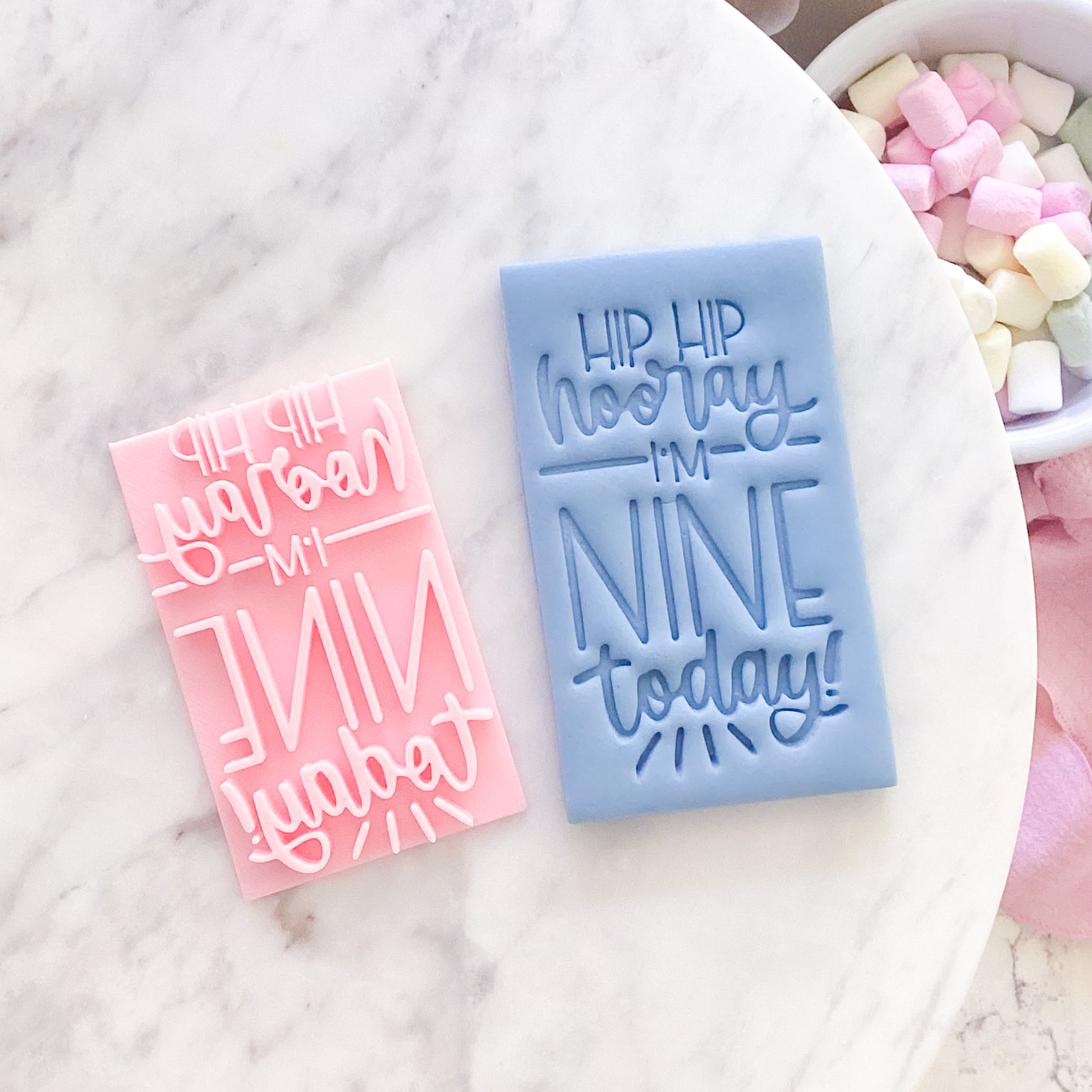 Hip Hip Hooray, I'm Nine Today! Fondant Stamp