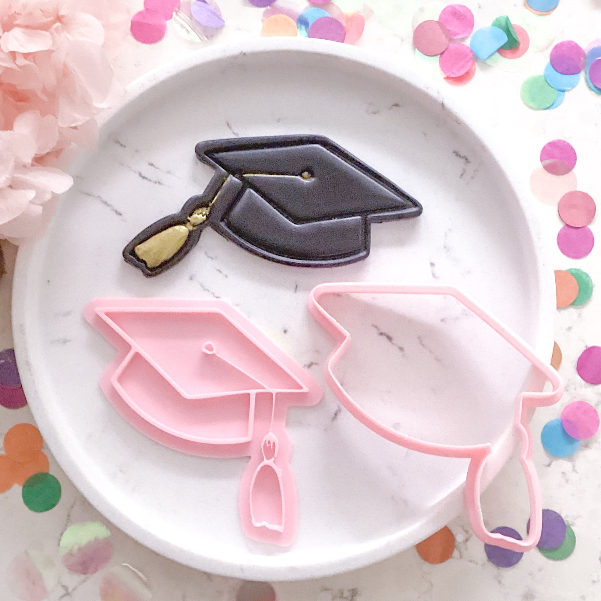Create a themed cookie moment for parties, gifts, and bake sales. Our "Graduate Hat" - Cookie Cutter & Stamp" cookie cutter and stamp set makes it super simple to create cookies or fondant toppers with clean edges and easy decorating. Great for party platters, favour bags, and quick bakes with the kids.