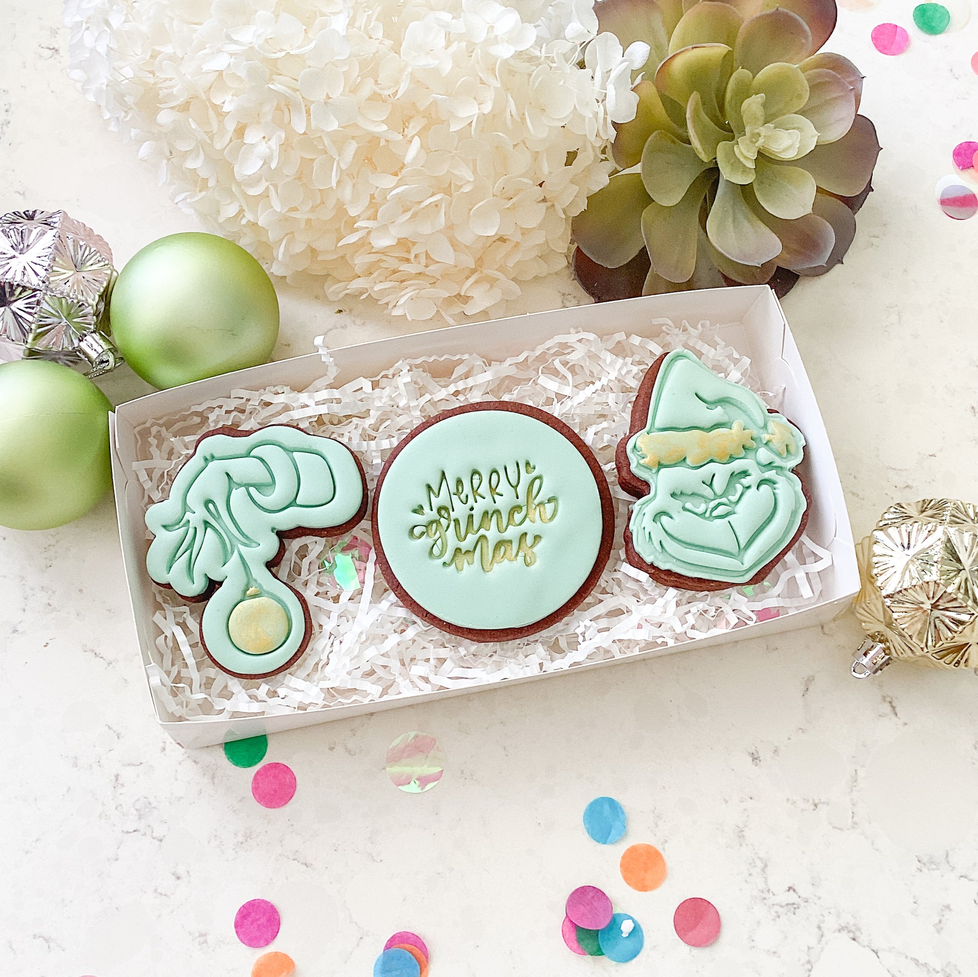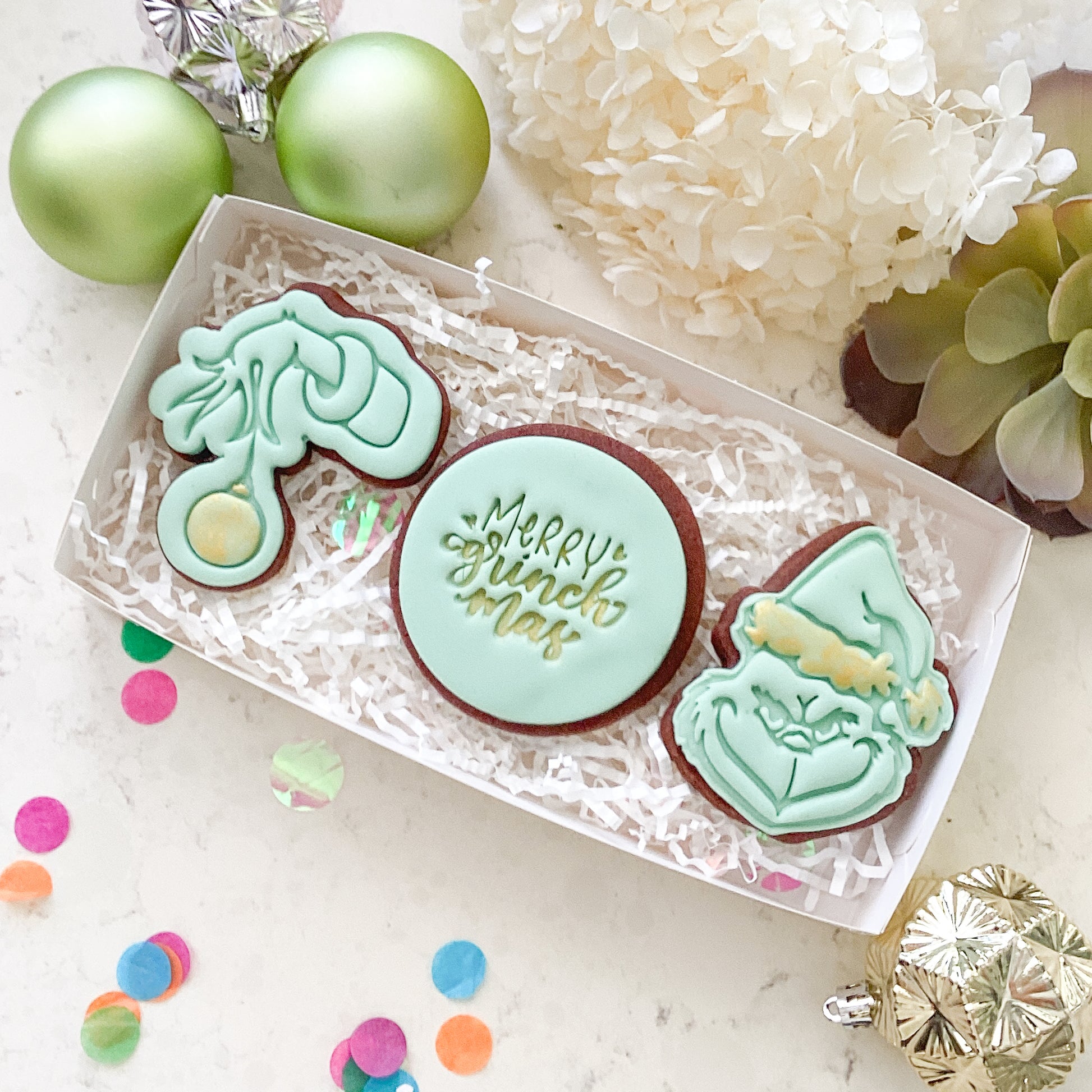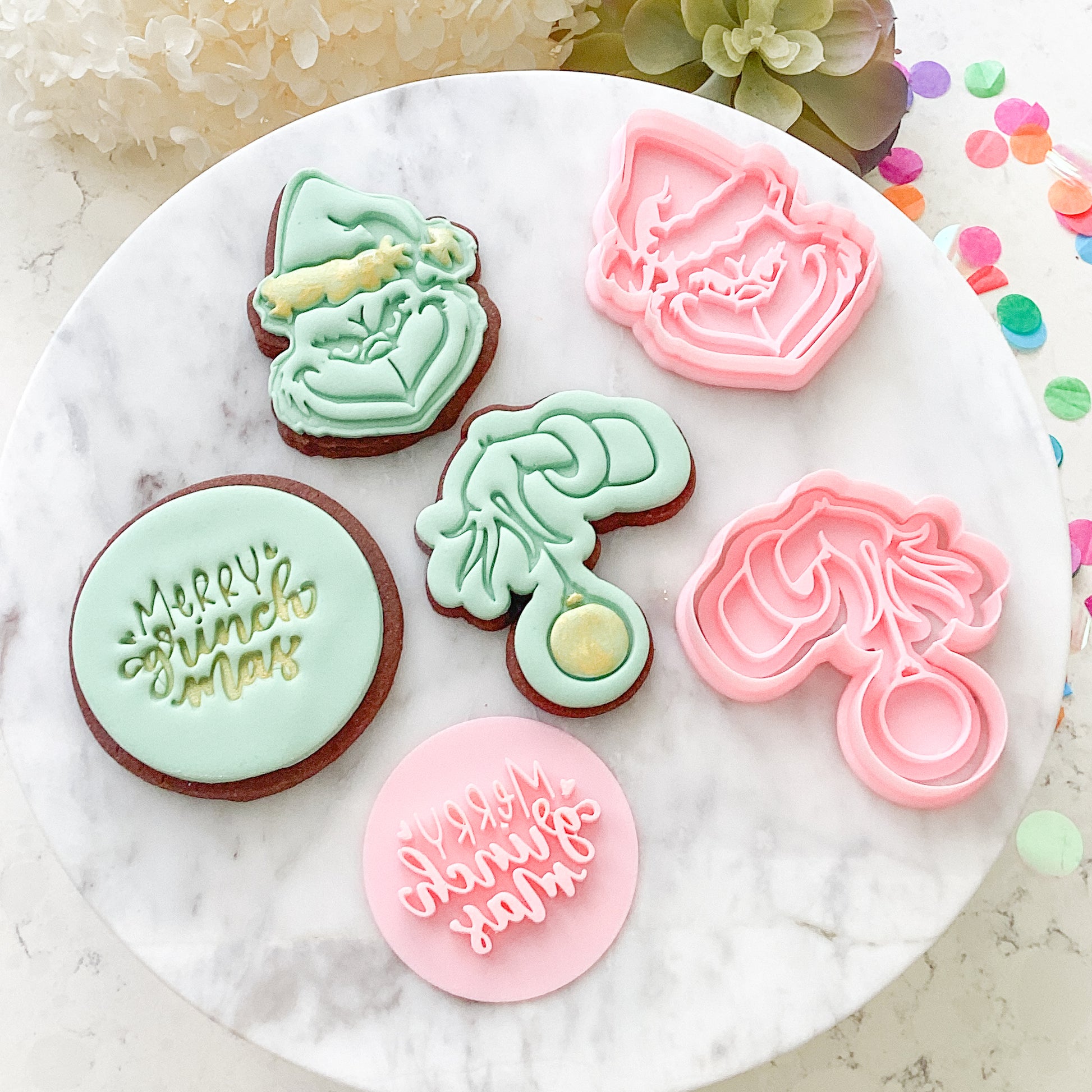 - “Merry Grinchmas” Fondant Stamp – add the finishing touch to your themed cookie sets