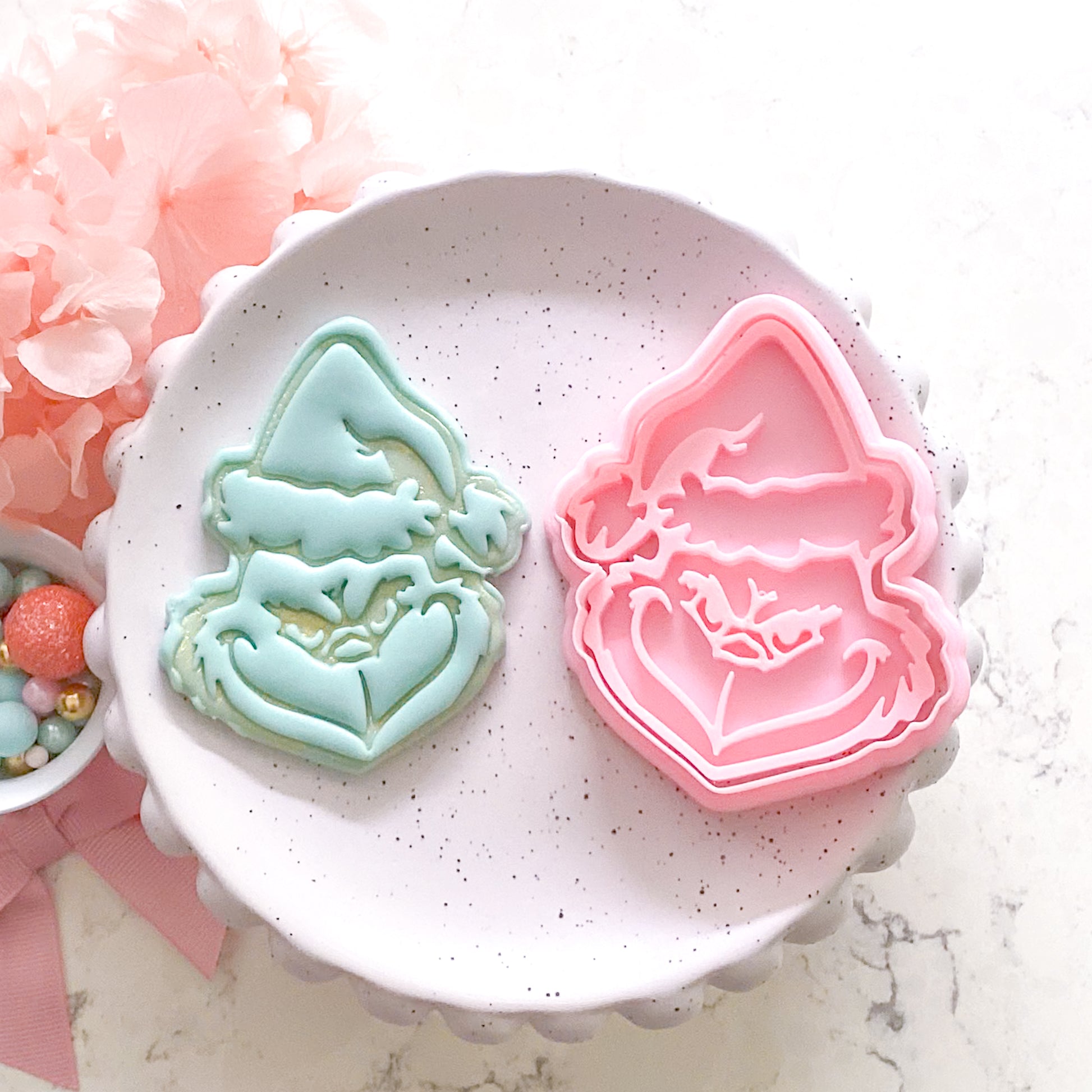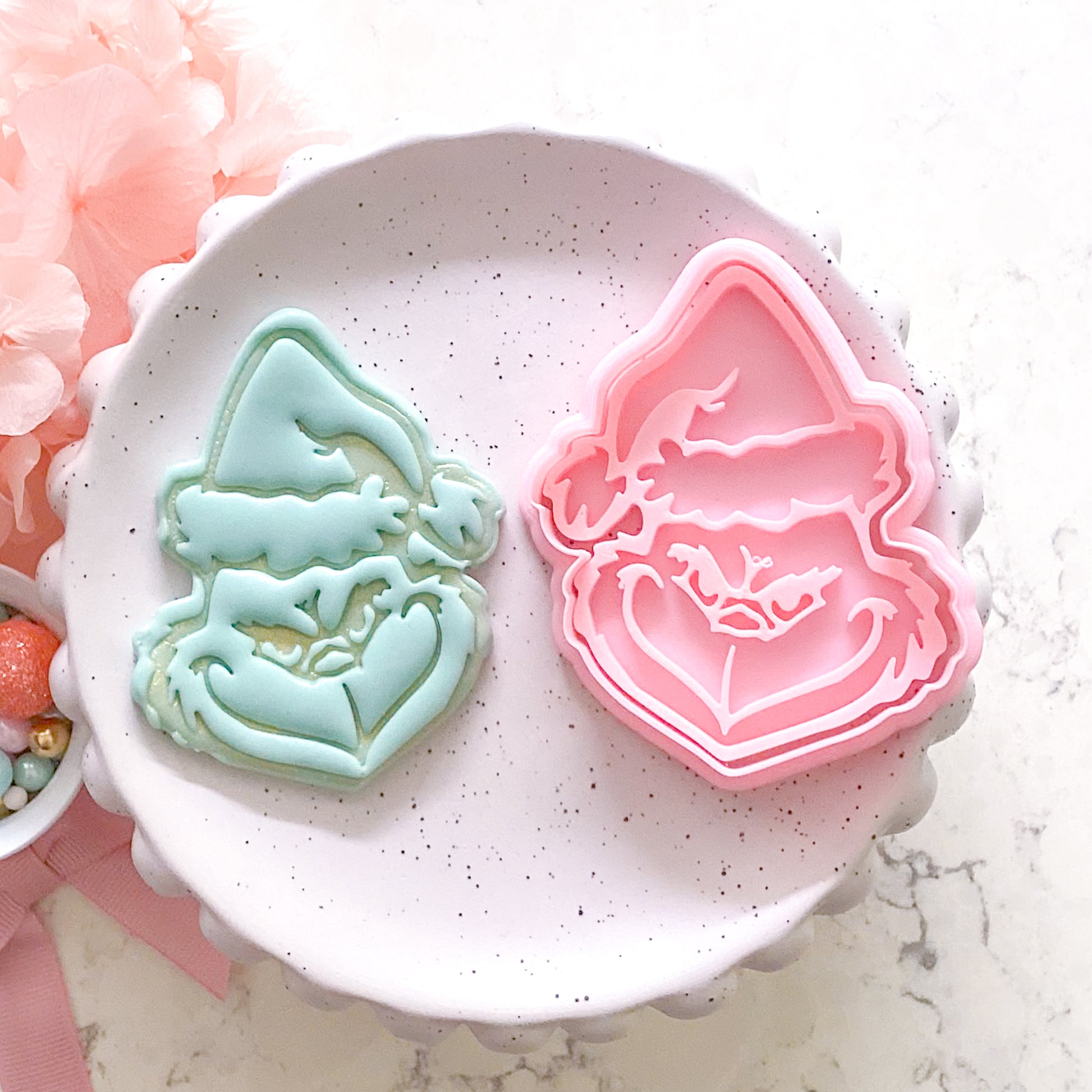 Deck out your dessert table with festive shapes everyone will love. Our "Grinch" Cookie Cutter & Stamp" cookie cutter and stamp set makes it super simple to create cookies or fondant toppers with clean edges and easy decorating. Great for party platters, favour bags, and quick bakes with the kids.