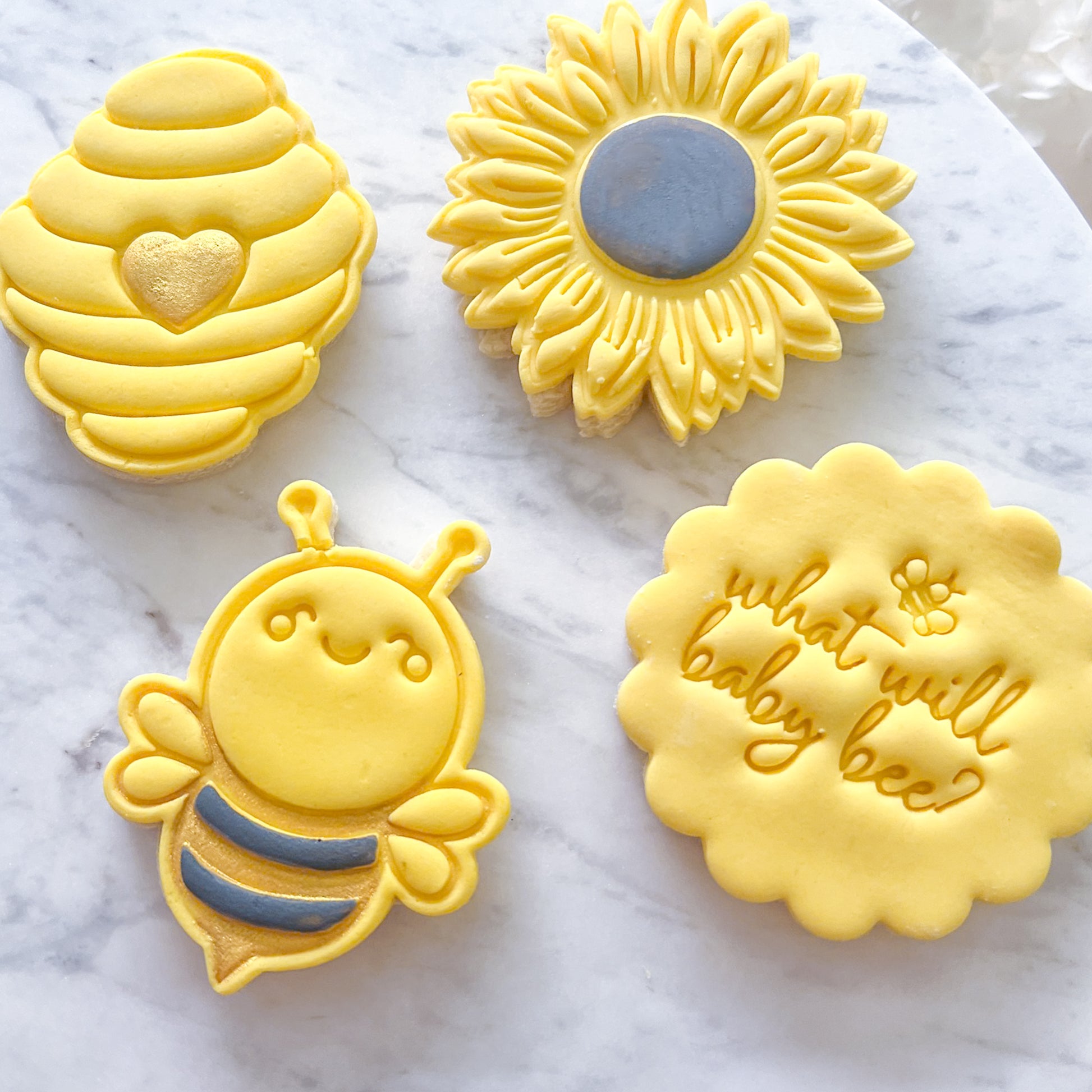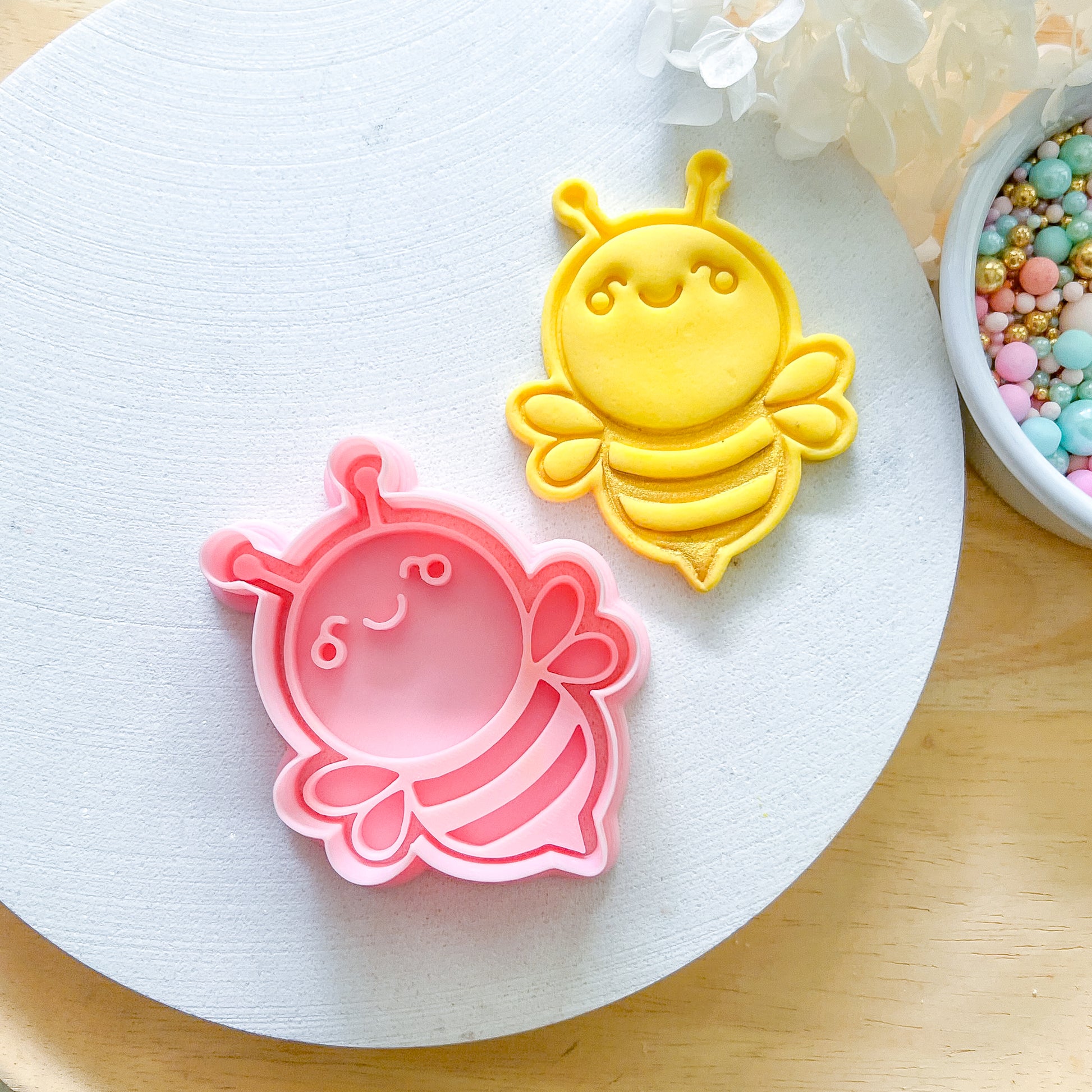 Welcome a little one with sweet, homemade cookies. Our "Happy Bee" - Cookie Cutter & Stamp" cookie cutter and stamp set makes it super simple to create cookies or fondant toppers with clean edges and easy decorating. Great for party platters, favour bags, and quick bakes with the kids.