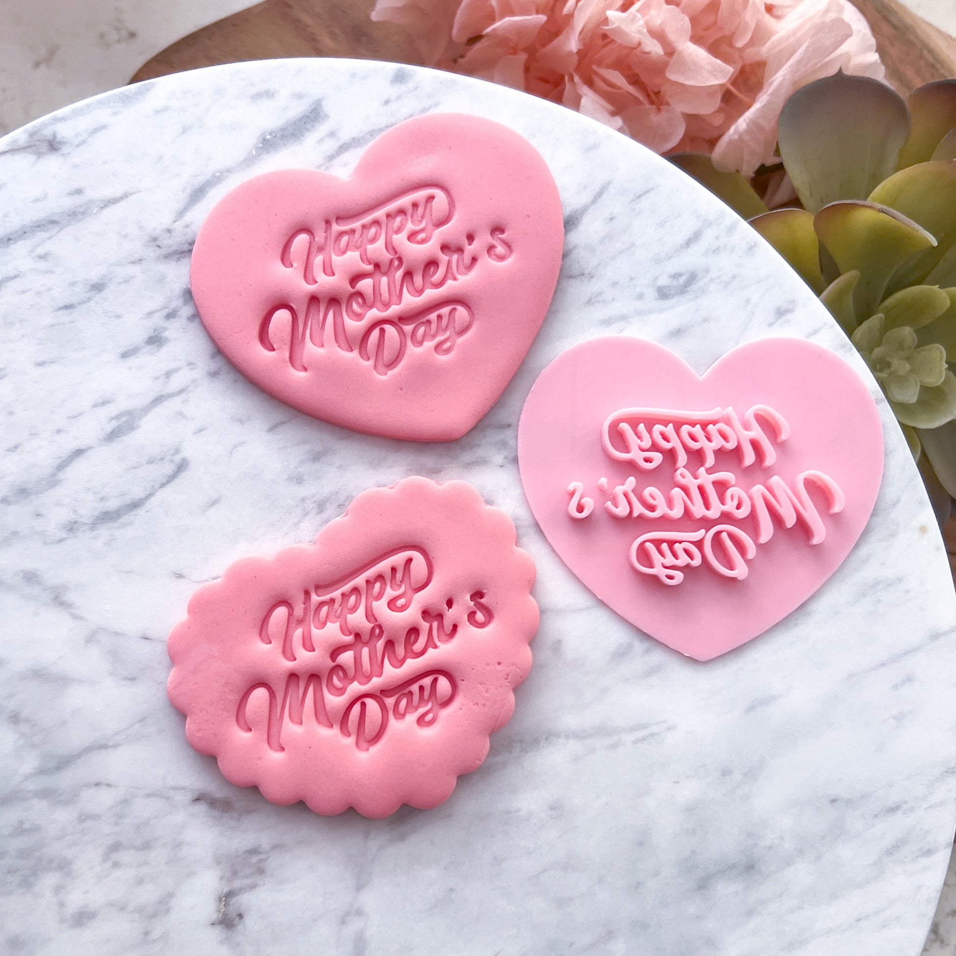 Create gorgeous fondant decorations in seconds with our Happy Mothers Day #3 Fondant Stamp. Easy to use and perfect for all kinds of themed cookies and fondant designs, this stamp helps you achieve beautiful, detailed designs with ease. Approx. size: 0.5 cm.