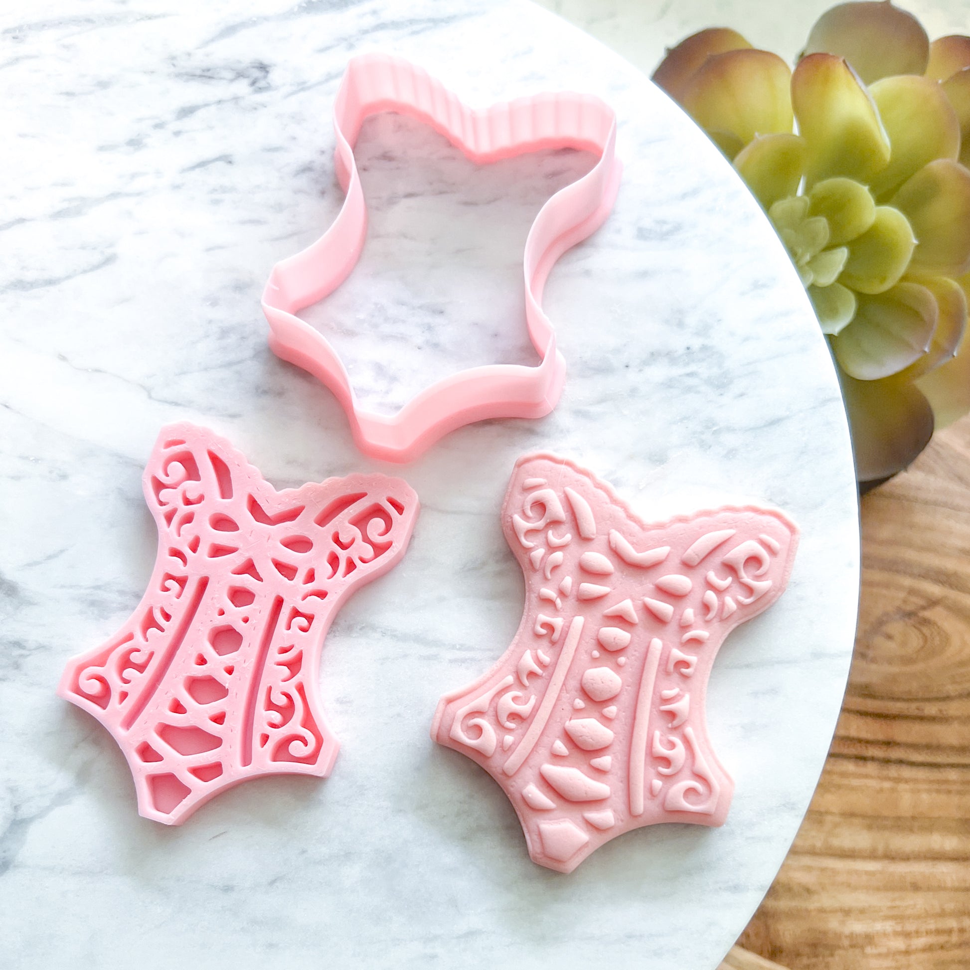 Celebrate an upcoming wedding or engagement with custom cookies made by you! Our "Lingerie" - Cookie Cutter & Stamp" cookie cutter and stamp set makes it super simple to create cookies or fondant toppers with clean edges and easy decorating. Great for party platters, favour bags, and quick bakes with the kids.