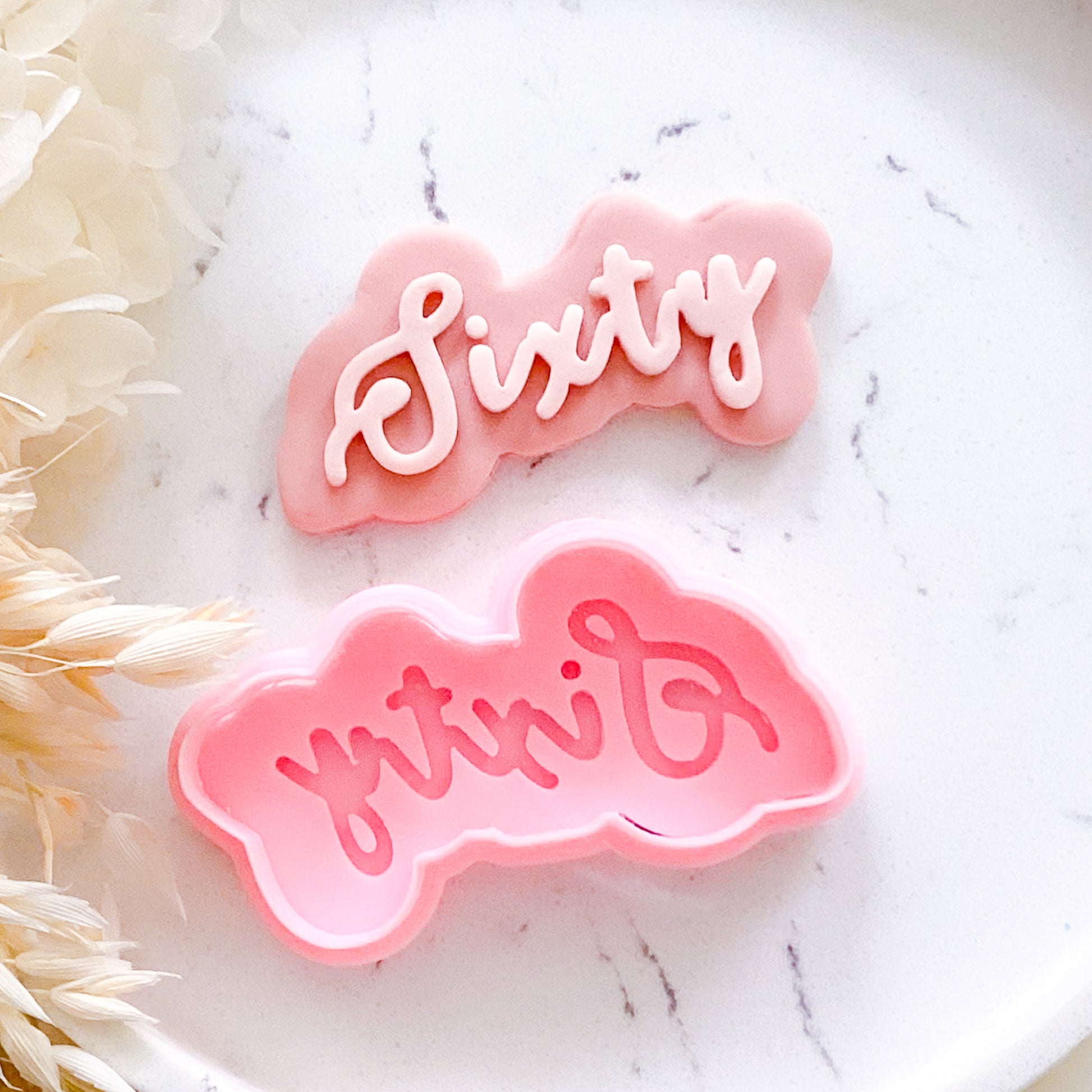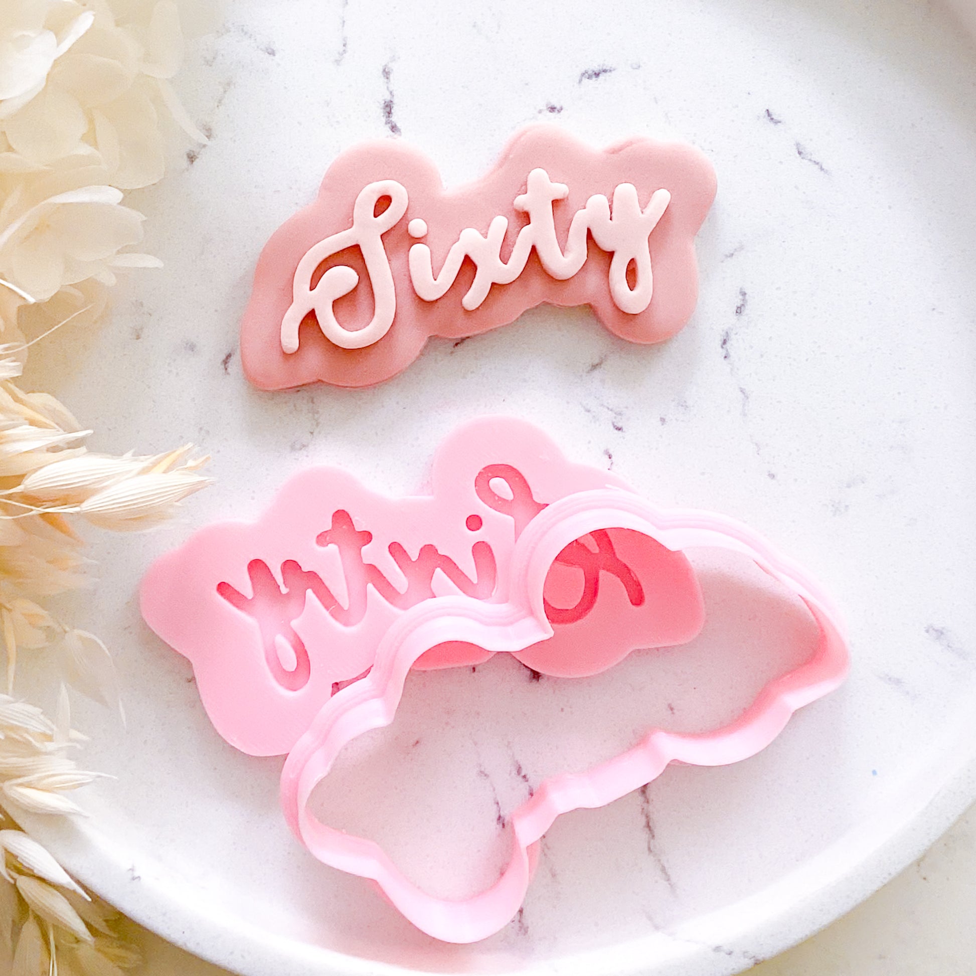 Personalise birthday bakes and party favours with handmade cookies. Our "Sixty" - Cookie Stamp & Cutter Set" cookie cutter and stamp set makes it super simple to create cookies or fondant toppers with clean edges and easy decorating. Great for party platters, favour bags, and quick bakes with the kids.