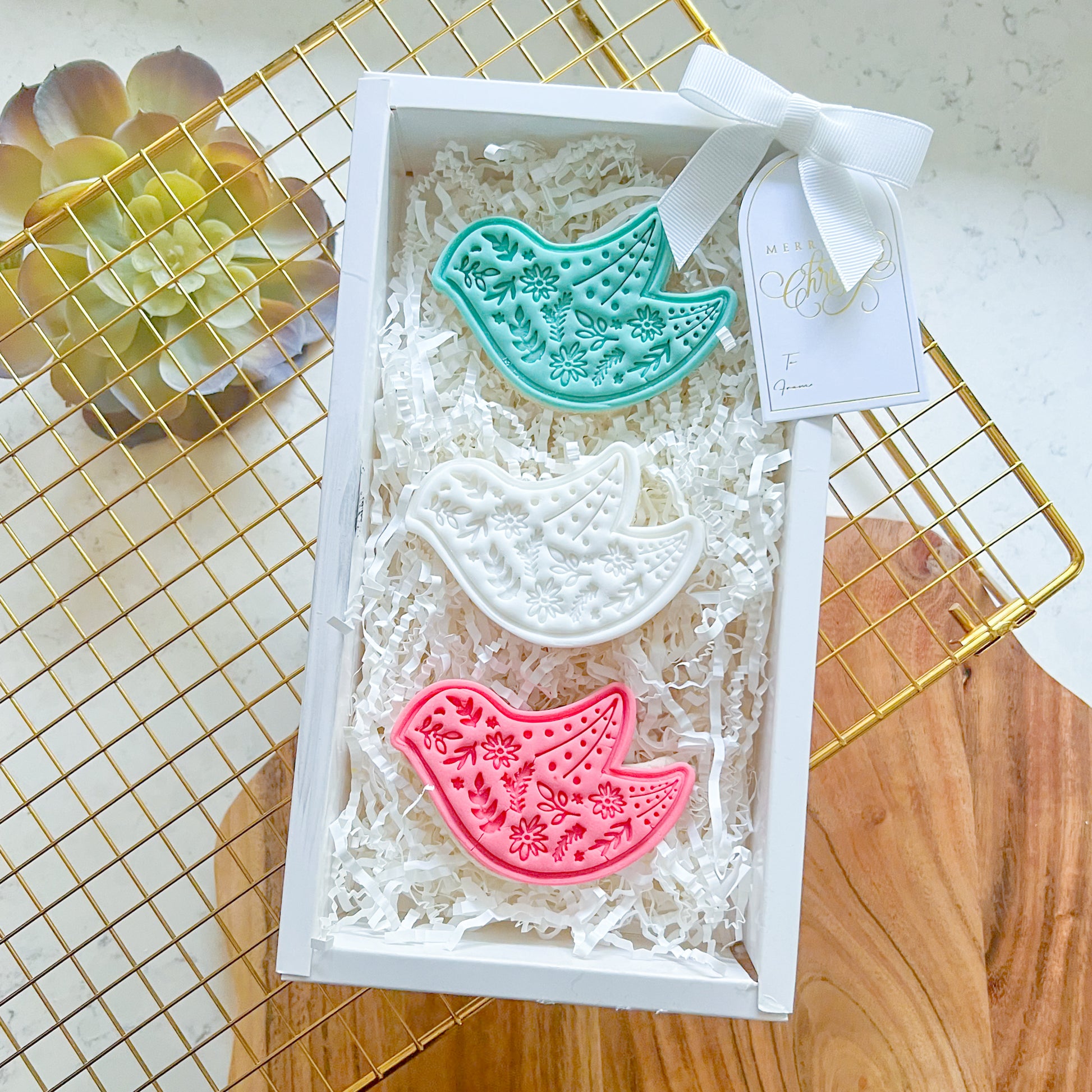 Celebrate an upcoming wedding or engagement with custom cookies made by you! Our "Skandi Bird" Cookie Cutter & Stamp" cookie cutter and stamp set makes it super simple to create cookies or fondant toppers with clean edges and easy decorating. Great for party platters, favour bags, and quick bakes with the kids.