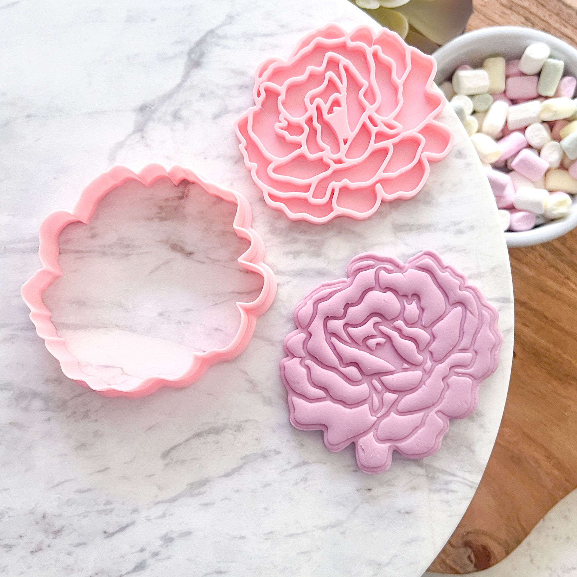Celebrate an upcoming wedding or engagement with custom cookies made by you! Our "Peony Rose" - Cookie Cutter & Stamp" cookie cutter and stamp set makes it super simple to create cookies or fondant toppers with clean edges and easy decorating. Great for party platters, favour bags, and quick bakes with the kids.