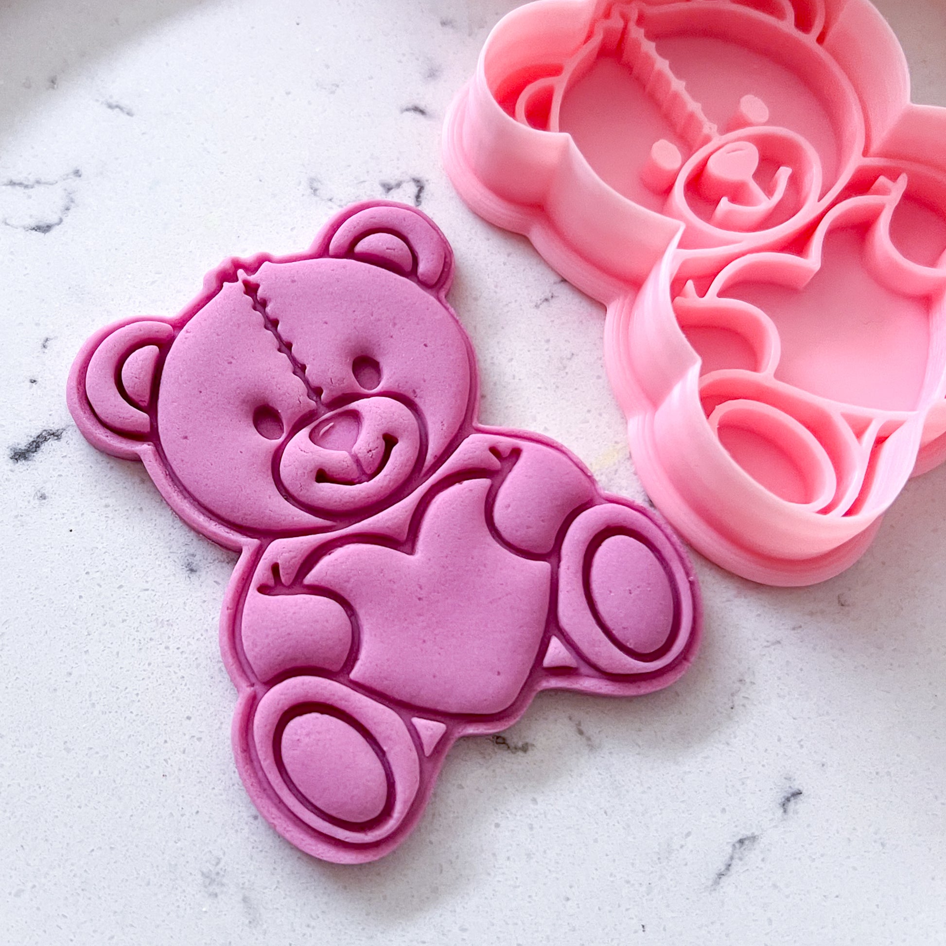 "Teddy Cuddling Heart”- Cookie Cutter & Stamp