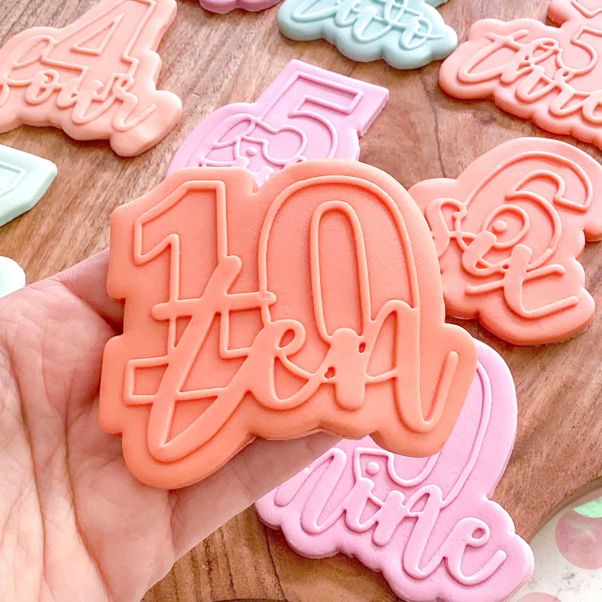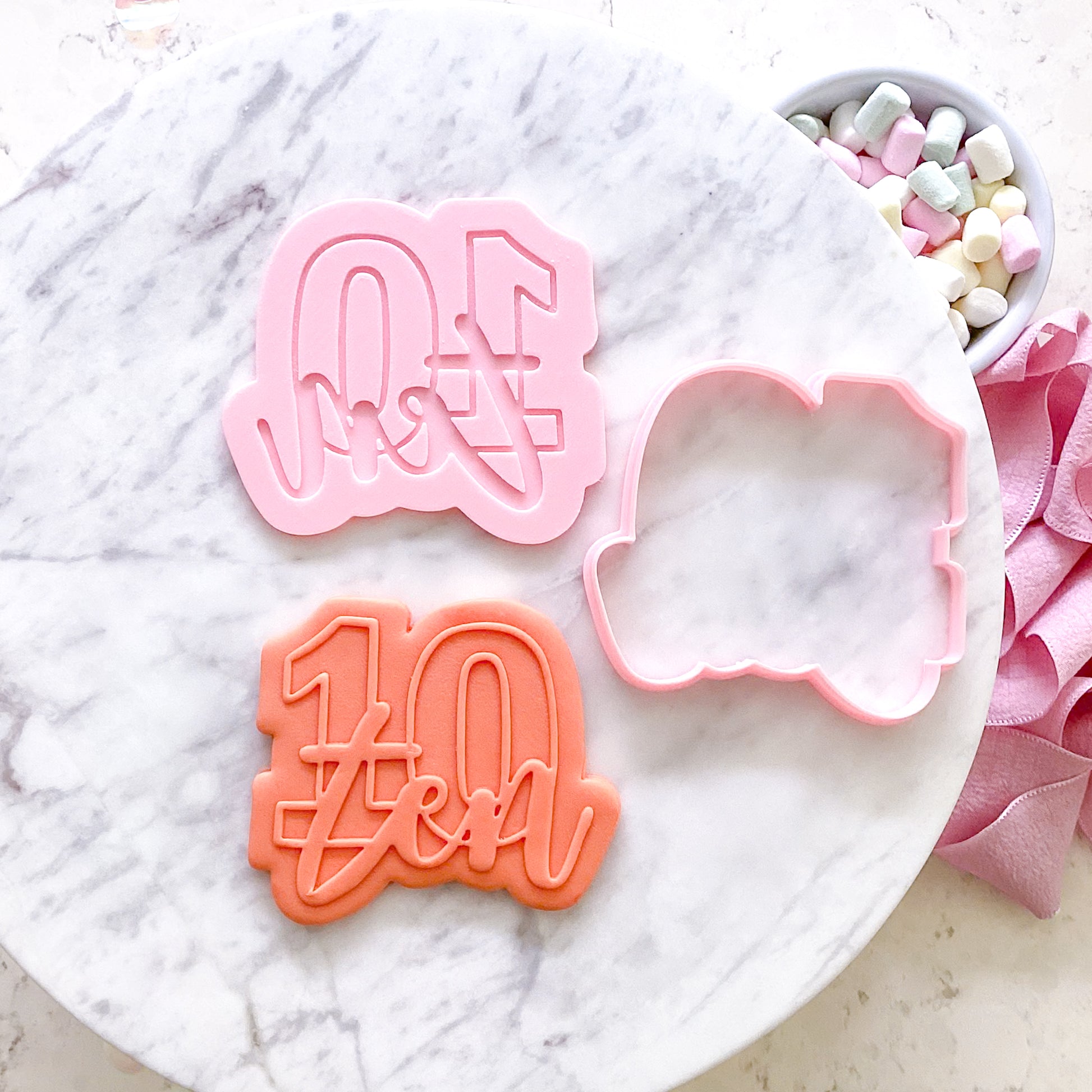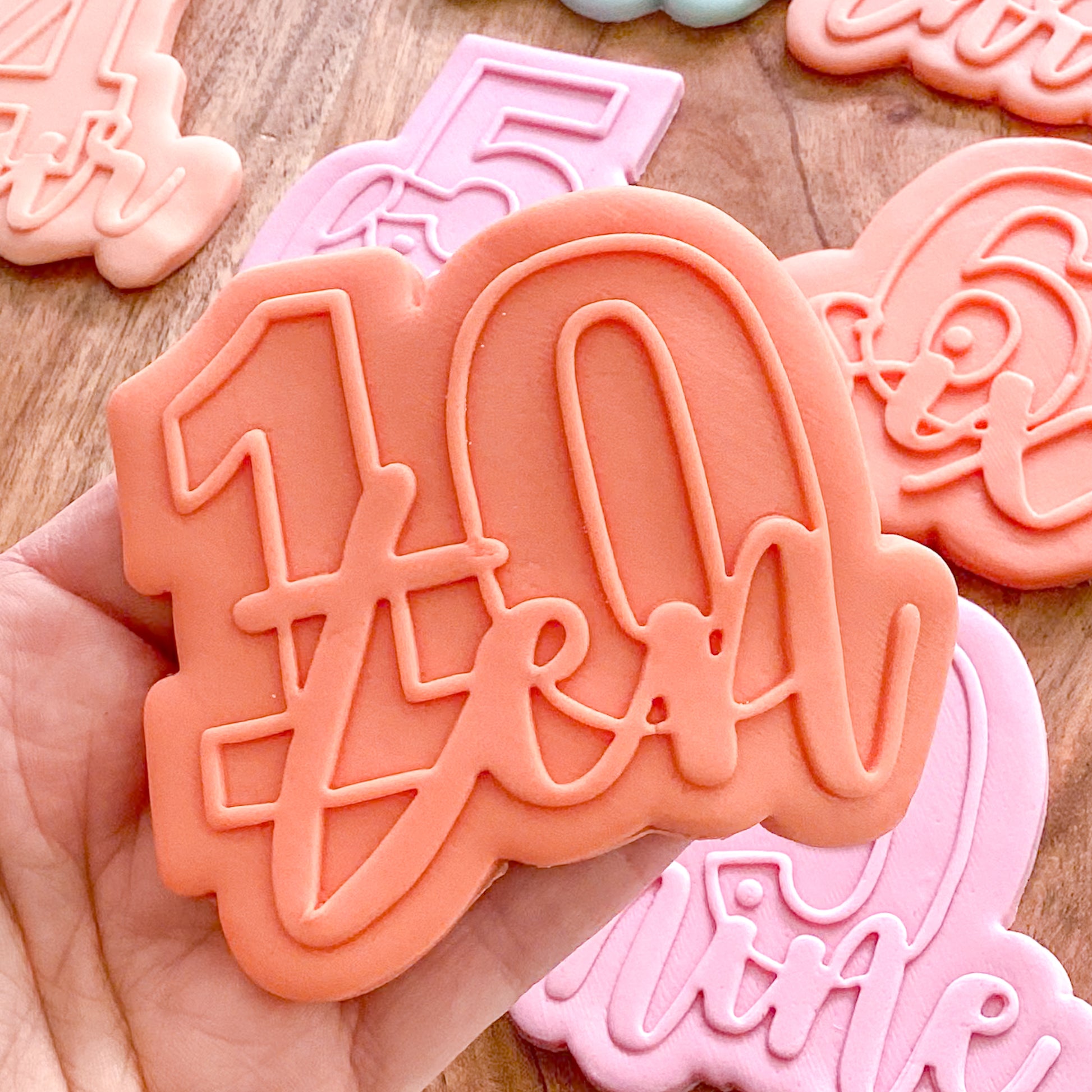 Personalise birthday bakes and party favours with handmade cookies. Our "Ten - Cookie Cutter & Stamp" cookie cutter and stamp set makes it super simple to create cookies or fondant toppers with clean edges and easy decorating. Great for party platters, favour bags, and quick bakes with the kids.