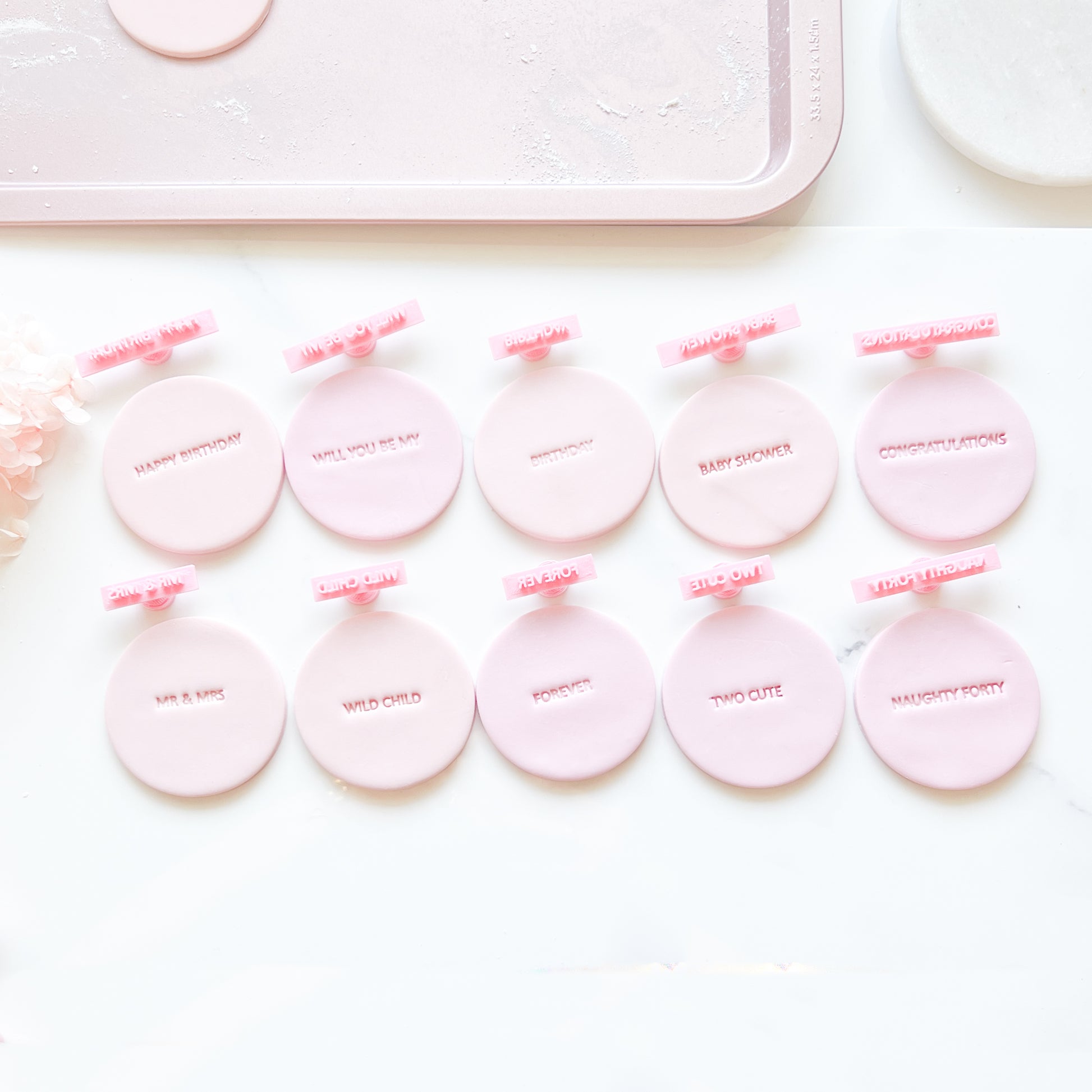 Simply mix and match a Phrase with an Occasion to build your own message — perfect for fondant cookies for every event or celebration.
